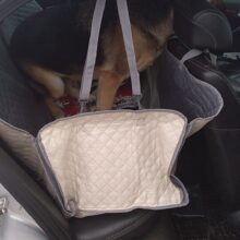 Great thing. Fits great into Polo sedan, and thick enough to keep the Stafford busy chewing the zippers.