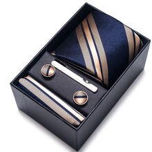 100% Silk Brand Tie Handkerchief Cufflink Set For Men Necktie Holiday Gift Box Blue Gold Suit Accessories Slim Wedding Gravatas